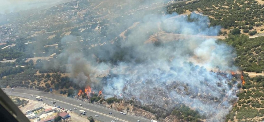 Yangına İzmir Orman Bölge Müdürlüğü ekipleri 3 helikopter ile havadan, 9 arazöz ile karadan müdahale edilirken, itfaiye ekipleri de söndürme çalışmalarına destek veriyor.