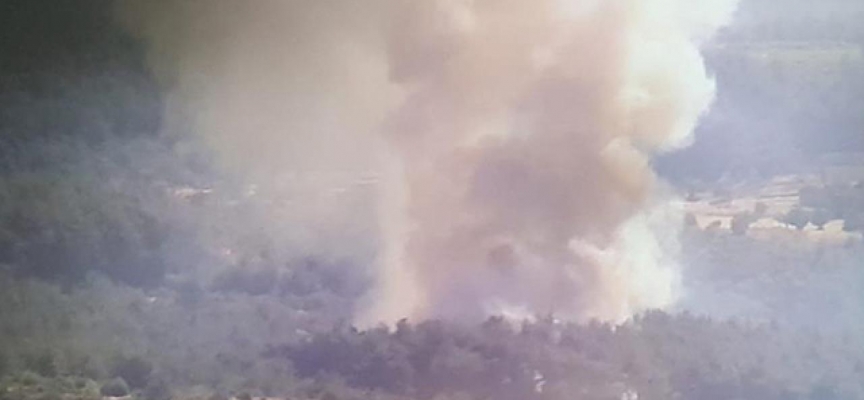 Alevlere 4 uçak ve 4 helikopter,12 arazöz ve 1 iş makinesiyle müdahale ediliyor.