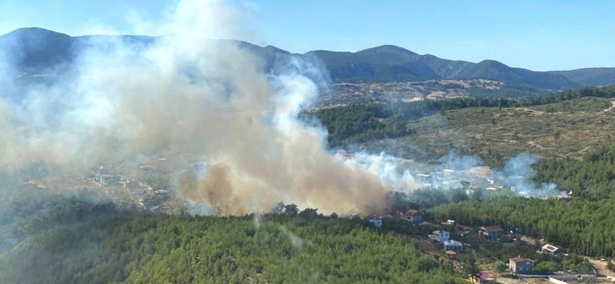 Alevlerin yerleşim yerine sıçramaması için ekiplen önlem alıyor.