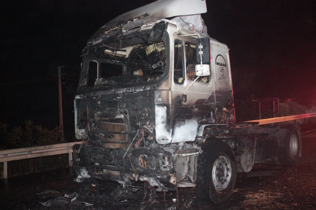 Ekiplerin müdahalesiyle söndürülen yangın sonucu, tır kullanmaz hale geldi.