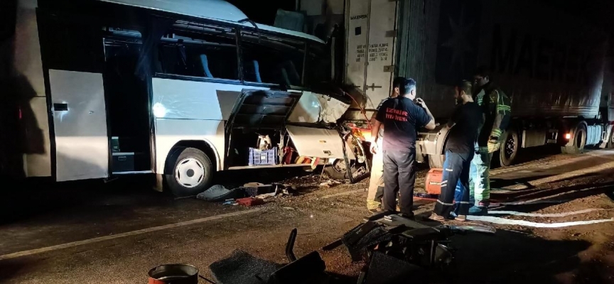 İzmir'in Bergama ilçesinde Yıldırım Çınar idaresindeki servis minibüsü, İzmir Çanakkale yolu Zeytindağ Kantar mevkisinde E.Ö.'nün kullandığı tıra arkadan çarptı.