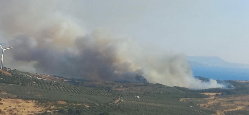 Dikili'de yerleşimden uzak tarım alanından henüz belirlenemeyen sebepten yangın çıktı.