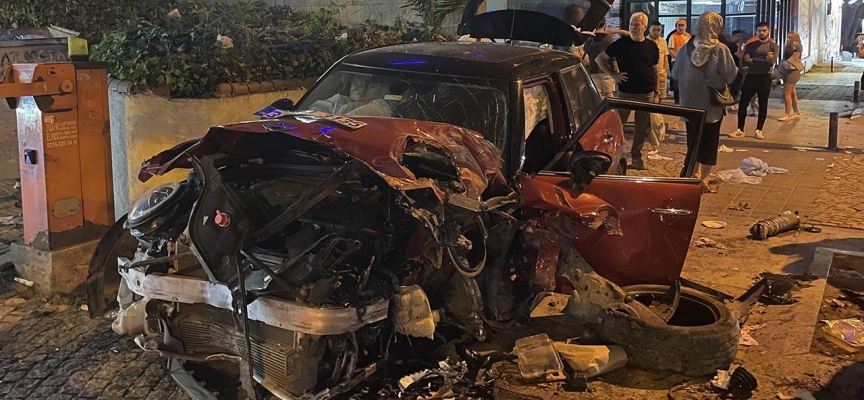Bağdat Caddesi'nde seyreden Muhammed A. yönetimindeki otomobil, kaldırımdaki refüje, çöp konteynırına ardından da duvara çarparak durabildi. Sürücü ve yolcular otomobilde sıkıştı.
