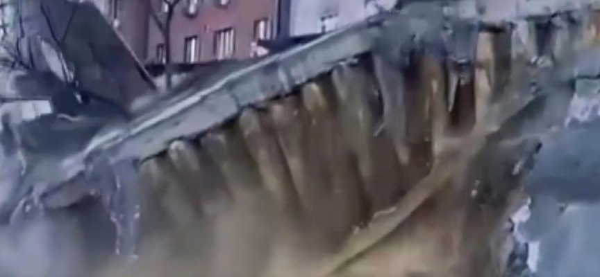 Çökme anları güvenlik kameralarına ise saniye saniye yansıdı.