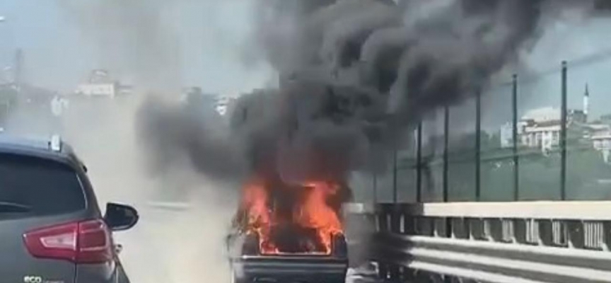 Okmeydanı-Hasdal bağlantı yolundaki Sadabad 2 Viyadüğü'nde seyreden otomobilin sürücüsü, dumanlar yükseldiğini gördüğü aracını yolun sağına park etti.