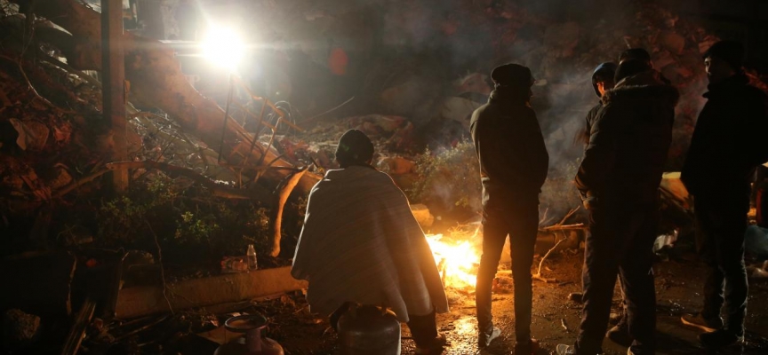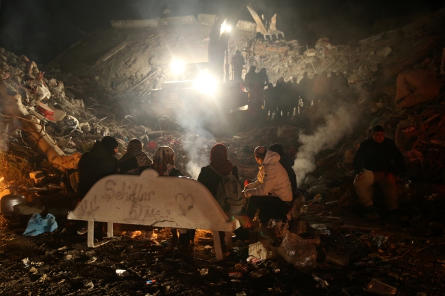 En ufak bir yaşam belirtisi tespit ettiklerinde çalışmalarını titizlikle yürüten ekipler, gece saatlerinde hava sıcaklığının sıfırın altında 5 dereceye kadar düştüğü Kahramanmaraş, Gaziantep ve Adıyaman'da enkaz başında yakınlarını bekleyen vatandaşların yaktığı ateşin başında ısınıyor.