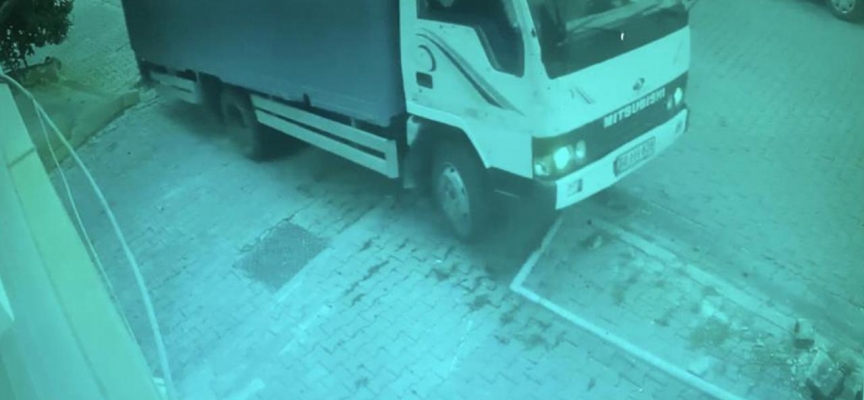 Kamyonet ardından büyük bir gürültüyle devrilerek yan yattı. Kaza anları ise güvenlik kameralarına saniye saniye yansıdı.