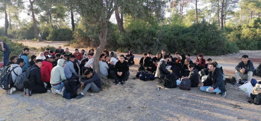 Kamyon kasasında Afganistan, Somali, Yemen, Eritre, Suriye, Filistin ve Mısır uyruklu toplam 64 kaçak göçmen yakalandı.