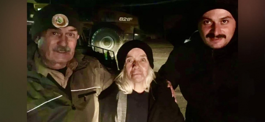 Yaşlı kadın, yaklaşık 5 saat sonra kum ocağı mevkiinde bulundu.