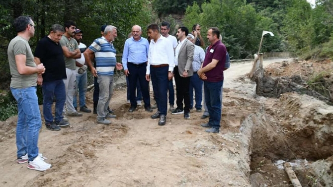 Yenice'de şebeke suyu borularının zarar görmesi nedeniyle yeterli miktarda su alamayan Güneyköy ve Tırköy'de içme suyu isale hattında tamamlanmak üzere olan çalışmaları da inceleyen Gürel, İl Özel İdaresi Su ve Kanal Hizmetleri Müdürü Abdullah Hüsam ile ekiplerden bilgi edindi.