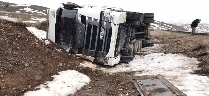 Boncukgöze köyü mevkisinde sürücüsünün ismi öğrenilemeyen gübre yüklü tır, kontrolden çıkarak devrildi.