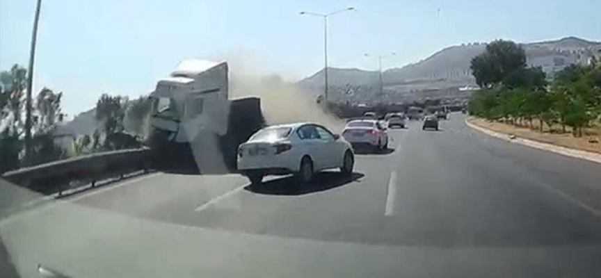 Tırın dorsesindeki demirler ise çevreyoluna saçıldı. Kaza anı kamerada Polis ekipleri kazayla ilgili soruşturma başlatırken, dehşet veren kaza anı da bir aracın kamerası tarafından saniye saniye kaydedildi.