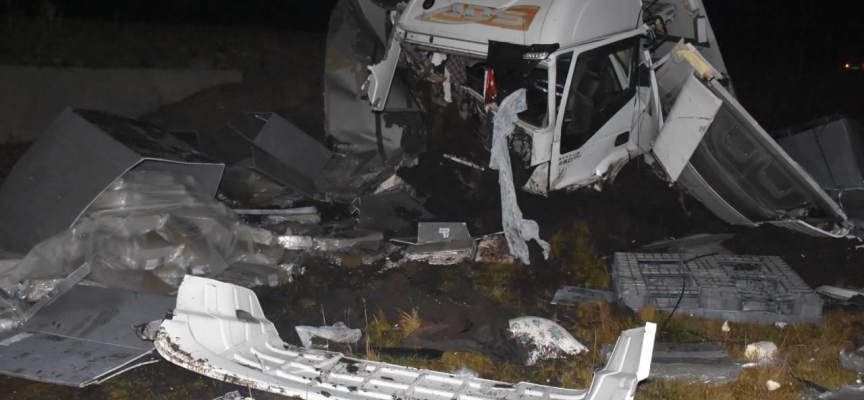 Çarpışmanın etkisiyle tır karşı şeride geçerek şarampole devrildi.
