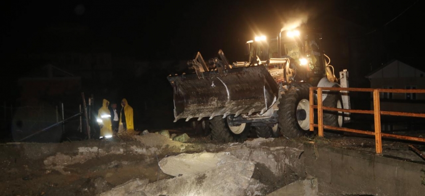 Bağdere köyünde tedbir amaçlı iki ev tahliye edilirken, köye bağlı Çayağzı Mahallesini ilçeye bağlayan köprüde ekipler tarafından taş ve kayalarla güçlendirme çalışması yapılıyor.