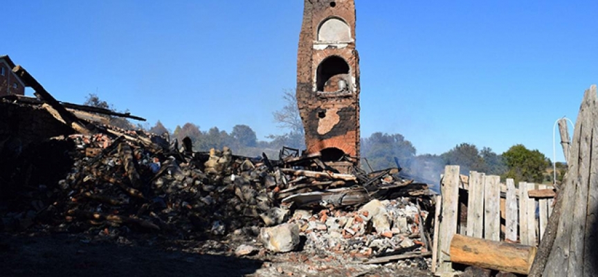 Ev ve ahırın kullanılmaz hale geldiği yangın, diğer evlere sıçramadan kontrol altına alındı.