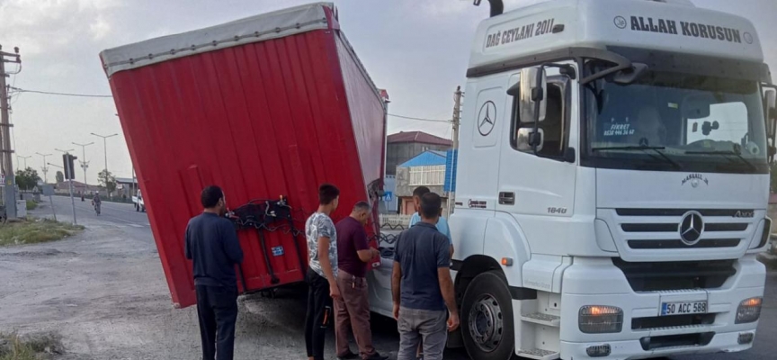 Ağrı Doğubayazıt istikametine seyir halinde olan tır Konaklı Mahallesi Kazım Karabekir Caddesi üzerinde bulunan kavşağı dönerken dorse çekiciden ayrıldı.