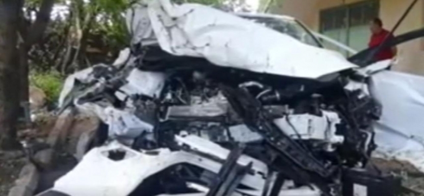 Kazada G.G. yönetimindeki otomobil metrelerce sürüklenip bir evin bahçesine girdi.