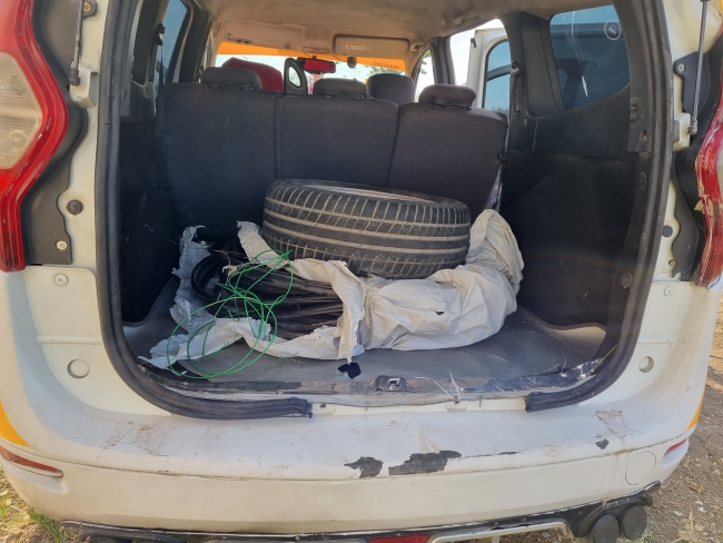 Bölgede inceleme yapan polisler, taksinin çevresinde ve aracın içinde çalıntı olduğu tespit edilen plastik kaplı bakır telefon kabloları ele geçirdi. Mustafa E., olayla ilgisi olmadığını iddia etti taksi şoförü kaçan 2 şüphelinin ve Mustafa E.’nin taksisine kablolarla bindiğini ve kendilerinin elektrikçi olduklarını söyleyip, tarlada indiklerini anlattı.