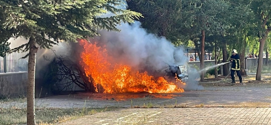Kayseri'de Ülfet Kızıklı İlkokulu bahçesinde müdür yardımcısı M.K'ye ait 38 AR 296 plakalı otomobilin motor kısmından duman çıkmaya başladı. Çevredekiler, itfaiye ve polis ekiplerinden yardım istedi.