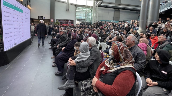 Salon yetersiz kalınca giriş kapısı önüne vatandaşlar için sandalyeler ve izlemeleri için ekran konuldu, kimi vatandaşlar kurayı merdivenlerde oturarak izledi.