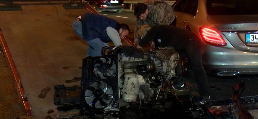 Kazanın ardından trafikte makas attığı iddia edilen otomobilin yerinden fırlayan motoru ise dikkat çekti. Kaza sonucu karayolundaki trafik bir süre aksadı.