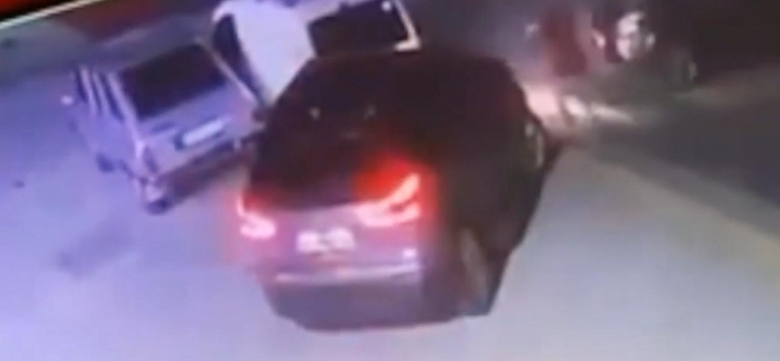 Güvenlik kamerası kayıtlarında, N.A. yönetimindeki cipin dönerek park halindeki araçlara çarptığı ve çevredekilerin sürücüye yardım ettiği görülüyor.