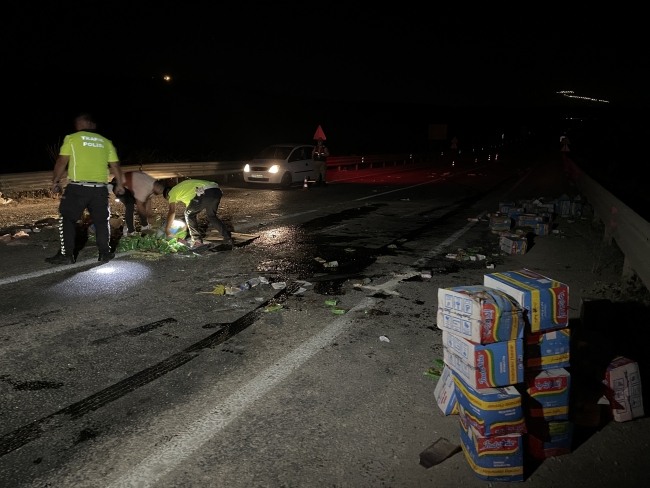 Devrilen minibüs nedeniyle bir süreliğine ulaşımın kontrollü sağlandığı yol, etraftaki gıda kolilerinin ve minibüsün kaldırılması sonucu trafiğe açıldı.