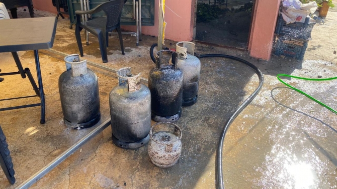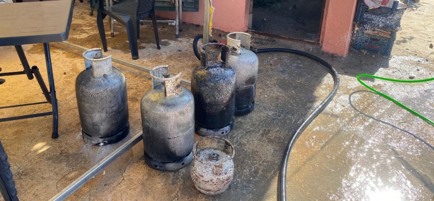 Kilis Belediyesi İtfaiye Müdürlüğü ekipleri, yangını söndürürken, 2 tüpün patladığı öğrenildi. Ölen ya da yaralananın olmadığı yangında maddi hasar oluştuğu öğrenildi.