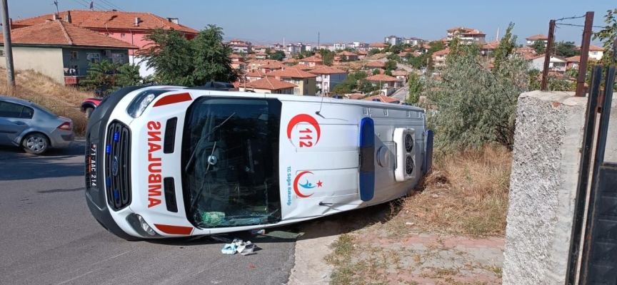 Çarpışmanın etkisiyle ambulans yola devrildi. İhbar üzerine kaza yerine polis ve sağlık ekipleri sevk edildi.