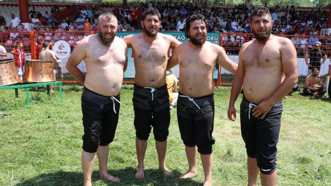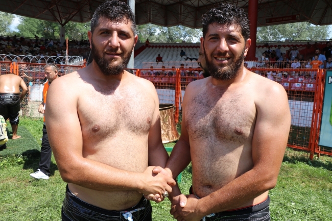Balıkesir'den gelen pehlivanlarlardan Engin Bozkurt ve yeğeni Arda Bozkurt da güreş sahasında yerini aldı. Amca yeğen Kırkpınar'da kol bağlamaktan mutluluk duyduğunu dile getirdi.