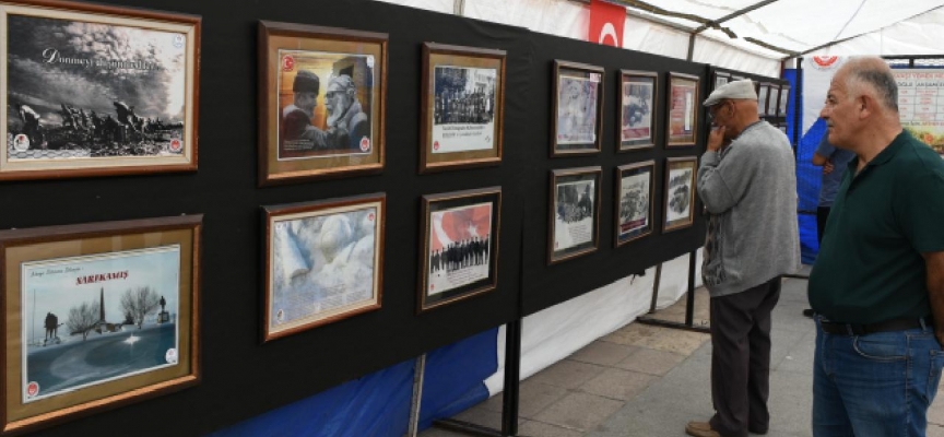 Kırşehir'de Cacabey Meydanı'nda 2 gün açık kalacak sergide Çanakkale, Sarıkamış ve Kırşehirli şehitlerle ilgili fotoğraflar yer aldı.