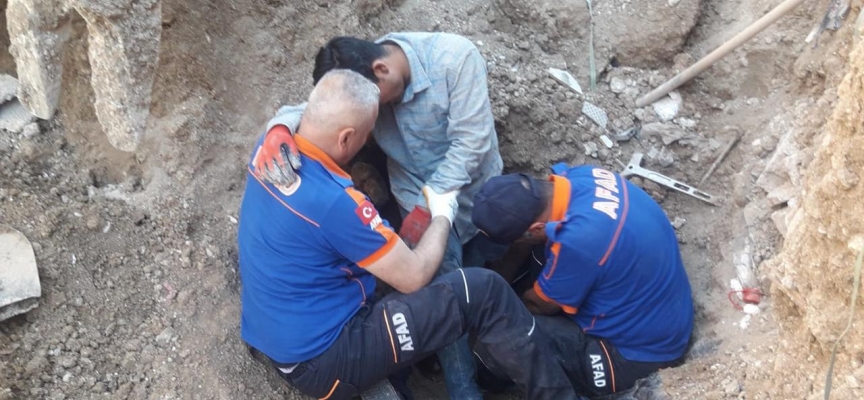 Olay yerine sevk edilen AFAD ekibi, sıkışan Afganistan uyruklu Suphi Rabbani'yi (25) bulunduğu yerden çıkardı.