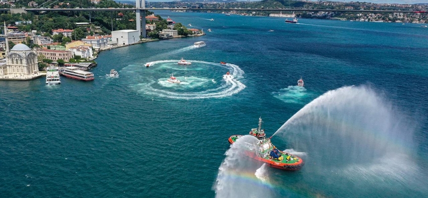 Beylerbeyi açıklarında başlayan saygı seyrine katılan deniz araçları, Anadolu Yakası sahil şeridinden Fatih Sultan Mehmet Köprüsü'ne kadar ilerledi.