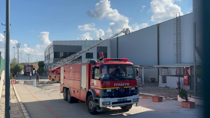 Balçık Mahallesi 3257 Sokak'ta bulunan bir gıda fabrikasında, kızartma kazanında parlama nedeniyle çıkan yangın bacaya sıçradı.