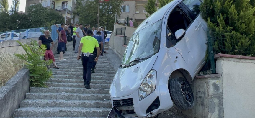 Kocaeli'nin Gebze ilçesinde Kübra Zehra Ö. idaresindeki otomobil kontrolden çıkarak yaklaşık 25 metre merdivenleri inerek devrildi.