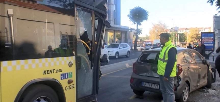Yol kenarında park halindeki 2 otomobile çarpan otobüs, ardından kaldırıma çıkıp Müze Gazhane'nin duvarına çarparak durabildi.