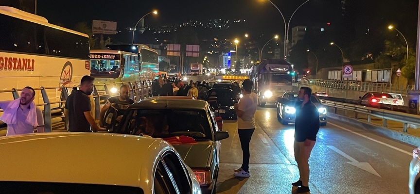 D-100 kara yolu Seka Tüneli'nde, asker uğurlama konvoyunda yer alan araçların sürücüleri yolu bir süre trafiğe kapattı.