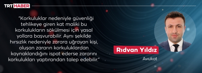 Avukat Rıdvan Yıldız, korkulukların hırsızlıkta merdiven olarak kullanılması ve diğer kat malikine zarar vermesine ilişkin şu açıklamayı yapıyor: