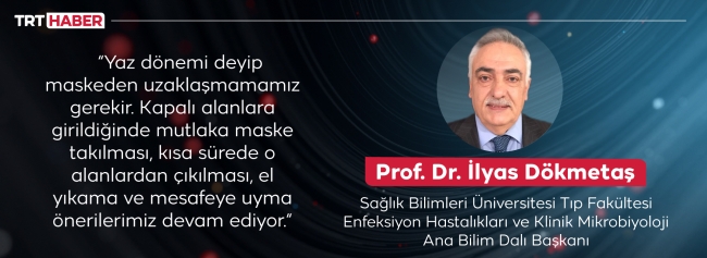 Sağlık Bilimleri Üniversitesi Tıp Fakültesi Enfeksiyon Hastalıkları ve Klinik Mikrobiyoloji Ana Bilim Dalı Başkanı Prof. Dr. İlyas Dökmetaş da yaşanan vaka artışlarına değinerek, “Şu aşamada test yaptırmaya gelenlerin yüzde 30 ila 50 sinde neredeyse pozitiflik var. Yaz dönemi olduğu için, önceden aşılama ya da hastalık geçirme gibi faktörler olduğundan daha hafif geçiriliyor. İnsanların bir kısmı ise sağlık kurumlarına gitmiyor. Ancak hastalık katlanarak artıyor. Panik yapılacak bir durum yok fakat tedbiri elden bırakmamak lazım” diye konuşuyor. Kişisel korunma önlemlerine dikkat edilmesi gerektiğini vurgulan Prof. Dr. Dökmetaş, sözlerini şöyle sürdürüyor: