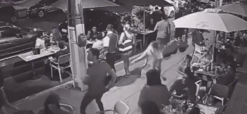 Bir grup insan koşarak restoranın önünden geçti, Onları gören müşteriler bir anda paniğe kapıldı. Restoranda oturanlar da masalardan kalkıp grubun peşinden koşmaya başladı.