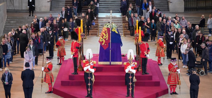 Parlamento binasındaki Westminster Hall'de katafalka konulan Kraliçe Elizabeth'in tabutunu görmek isteyen on binlerce kişi, yaklaşık 8 kilometre uzunluğunda kuyruk oluşturdu.