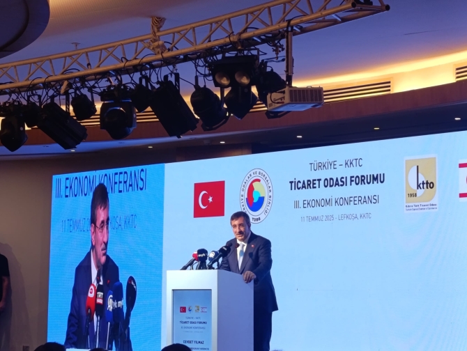 Türkiye Cumhurbaşkanı Yardımcısı Cevdet Yılmaz günübirlik temaslarda bulunmak amacıyla geldiği KKTC’de, Kıbrıs Türk Ticaret Odası(KTTO) – Türkiye Odalar ve Borsalar Birliği işbirliği (TOBB) ile düzenlenen “Türkiy- KKTC Ticaret Odası Forumu III. Ekonomi Konferansı”na katıldı.