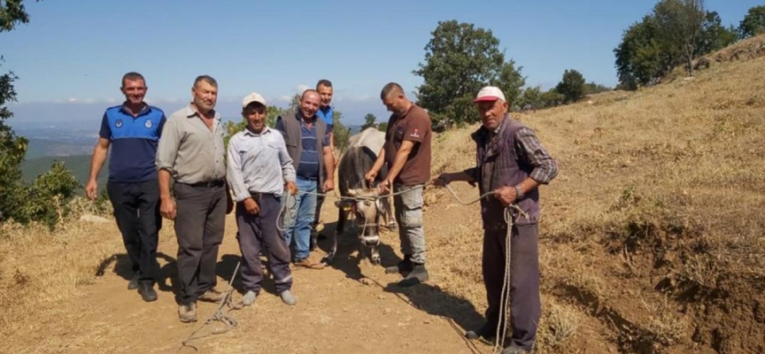 Kepsut Belediyesi'ne haber verildikten sonra zabıta ve köylüler hayvanı yakaladı.