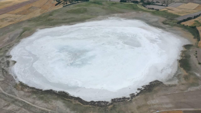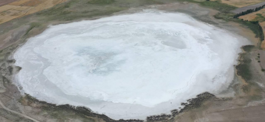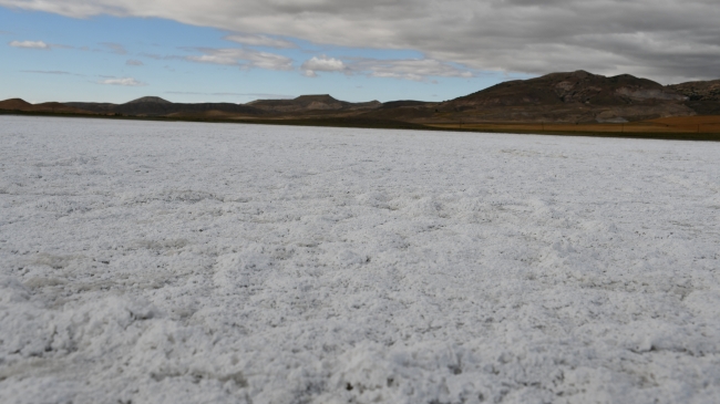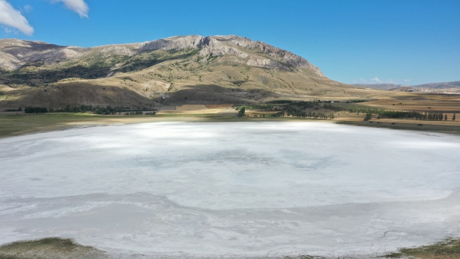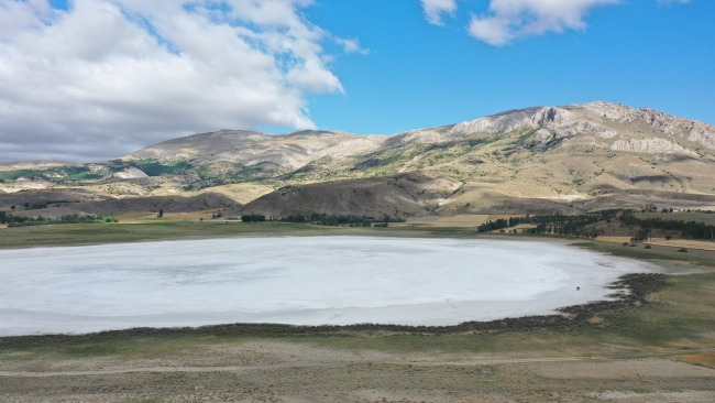 Bu yıl da 6. aydan itibaren suların çekildiği gölden geriye beyaz tuz tabakası kaldı.