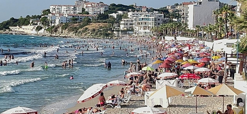 Kurban Bayramı'nda nüfusu 4 kat artan Kuşadası'nda, bayram sonrası da yoğunluk görüntüleri değişmedi.