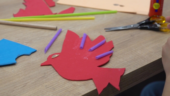 Ayşe Elif Başoğlu atölyeye katılan öğrencilerden biri. En sevdiği kuşu sorduğumuzda “Kızılbaşlı örümcek kuşu… Mersin'deymiş onu çok seviyorum” diyor.