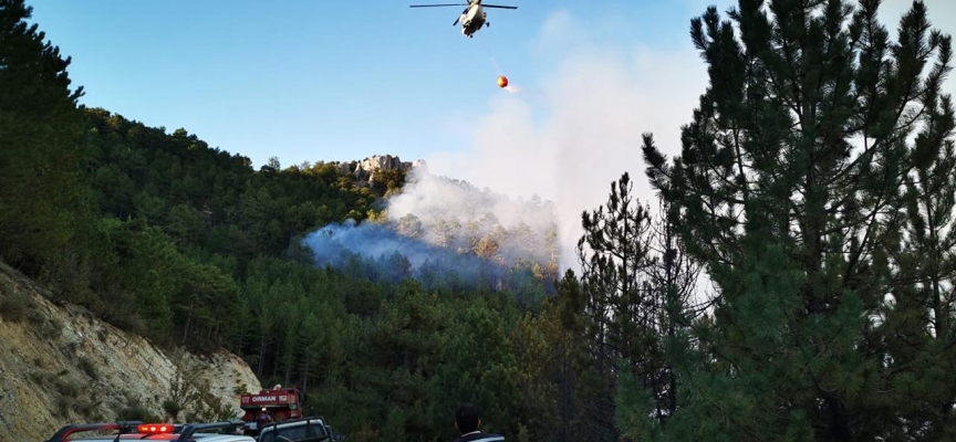 Küreci ile Samrık köyleri arasındaki ormanlık alanda dün çıkan yangına gece boyunca karadan ve havadan yoğun şekilde müdahale edildi.