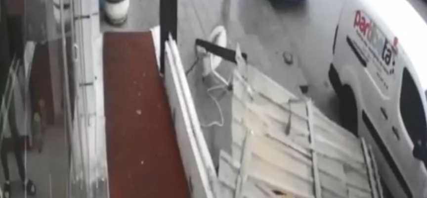 Kaldırımda köpeğiyle birlikte yürüyen bir kişi düşen parçanın altında kalmaktan son anda kurtuldu.