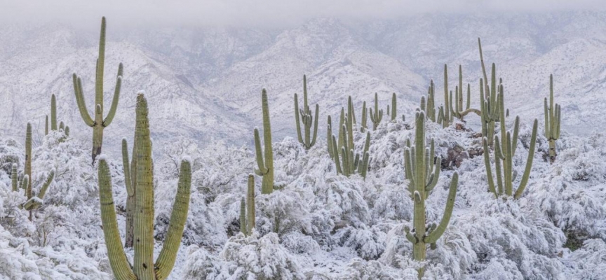 Pulitzer Ödüllü manzara fotoğrafçısı Jack Dykinga, kaktüsleri örten karın fotoğrafını 2 Mart'ta çekti.