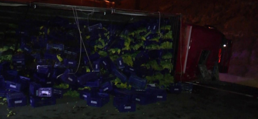 Nihat M. idaresindeki tır, Pendik'te Kuzey Marmara Mecidiye Bağlantı yolunda kontrolden çıkarak devrildi.